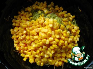 Всё складываем в миску, добавляем кукурузу без жидкости.