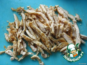 Тем временем наш куриный блинчик просолился от соевого соуса, можно его обжарить. Делаем это довольно быстро, чтоб не засушивать мяско.