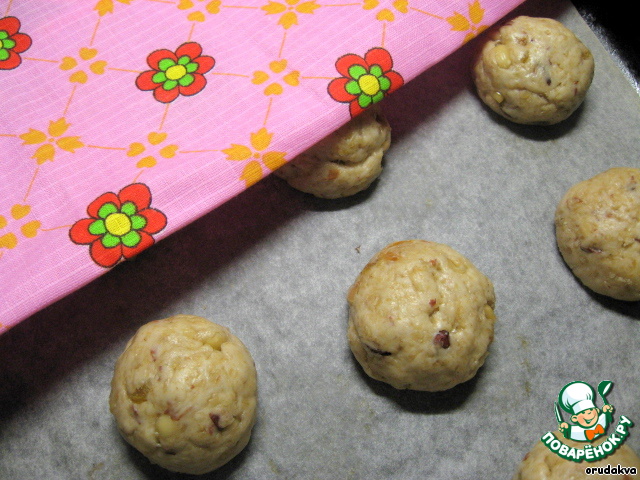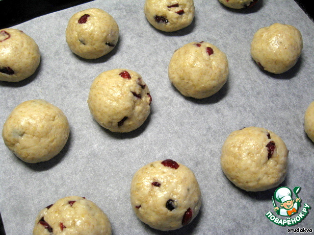 Противень застелем бумагой для выпекания. Сформируем небольшие (1ст. л теста) булочки. Выложим на противень и запечем в духовке до готовности около 30 минут. У каждого духовка разная, поэтому время относительно. Пышечки должны зарумяниться.