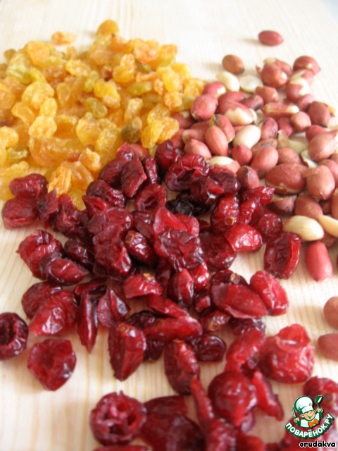 - Орехи (по вкусу, у меня арахис) — 50 г