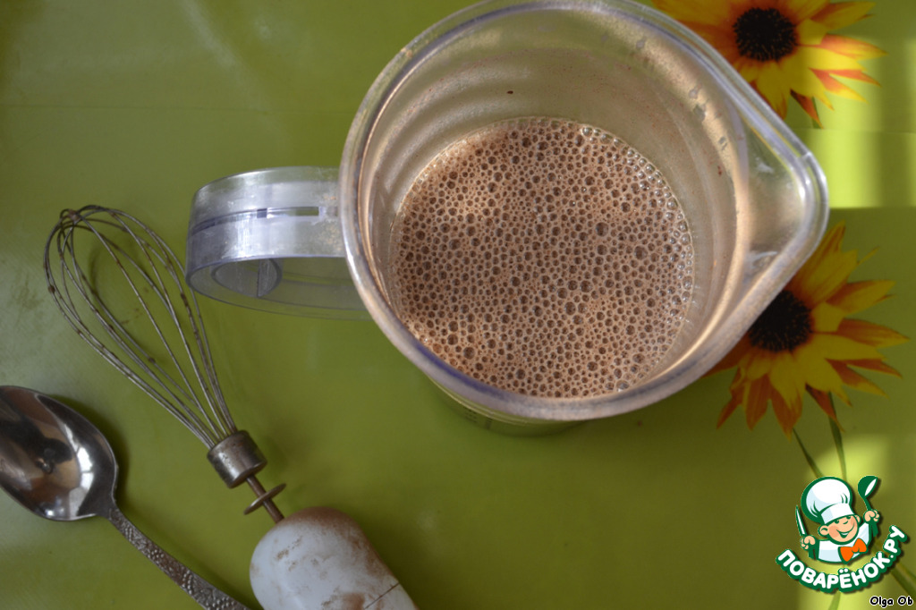 • Готовим тесто. Смешиваем какао, сахар и яйца. Я все взбивала блендером.