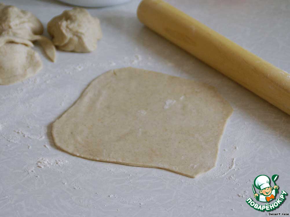 Раскатать тесто в квадраты со сторонами примерно 20 на 20 см.