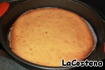 Остывший корж вынуть из формы и переложить на тарелку.