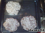 Фарш солим, перчим, формируем большие плоские лепешки (чтобы были по размеру больше ломтей хлеба, они ужарятся). Обжариваем. Мы это делаем на гриль-сковороде в духовке, тогда они получаются сочными и абсолютно нежирными. Но можно и обычным способом.