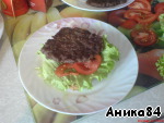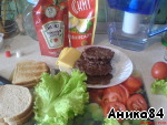Далее идет салат, помидор и наша говяжья котлетка. Ммммм... вы чувствуете этот аромат???