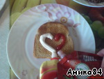 Делаем кофе, выкладываем все на одну тарелочку, так есть вкуснее))) Муж вырезал из помидора сердечко. И садимся завтракать!!! Приятного аппетита!!!
