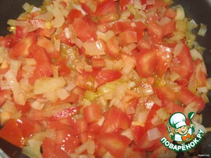 • Луковицу и помидор нарезать кубиками, обжарить на раст. масле.
