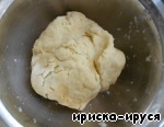 Перемешиваем желток, соль и воду, добавляем в мучную смесь и вымешиваем тесто.