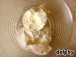На небольшой скорости взбейте крем-сыр со сметаной. Достаточно нескольких секунд, чтобы масса приобрела однородную консистенцию. Долго взбивать не надо, чтобы не образовывалось много пузырьков воздуха, из-за которых чизкейк потом может треснуть.