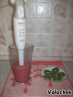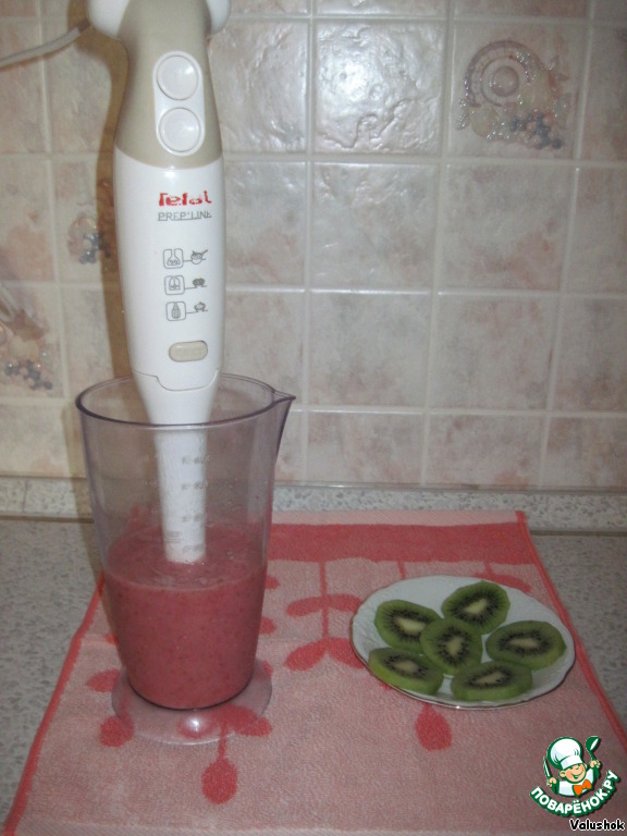 • Взбить до однородного состояния ягоды и фрукты. Киви добавить по желанию, я использовала для украшения.