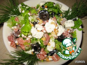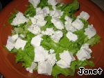 • Порвать салат руками, порезать сыр, выложить сверху.