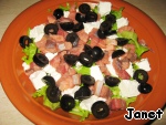• Смешать оливковое масло с лимонным соком. Не солить! Заправить салатик и перемешать. Всё! Очень быстро и вкусно! Перемешивать лучше непосредственно перед едой, сыр очень мягкий.