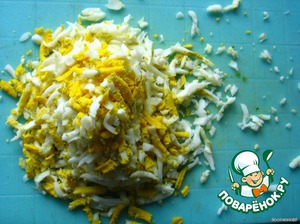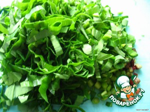 Черемшу - и стебли, и листья. Можно добавить перья чеснока, ошпаренную крапиву, укроп и так далее.