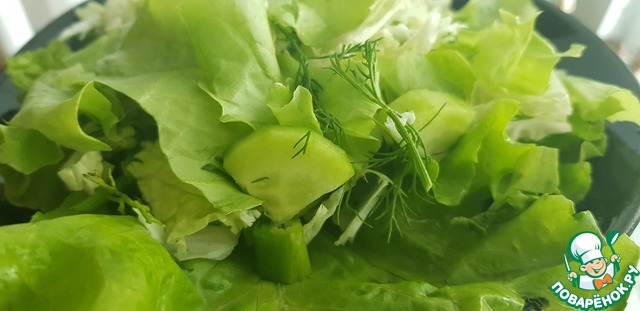Если помните, аптечная зеленка так называется:) А в этом салате действительно почти одна "трава", и, в общем, пользы от него даже больше, чем от зеленки, да еще и вкусно:)