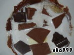 Шоколад разломать на небольшие кусочки и растопить со сливочным маслом на водяной бане.