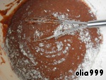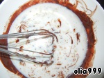 Добавить в шоколадную массу желтки, взбитые со сметаной, и хорошо перемешать.
