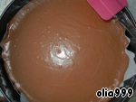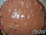 Торт вынуть из холодильника и полить большей частью шоколада.