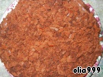 Накрыть третьим коржом и поставить на холод на минут 30. У меня третий корж разломался, я его просто раскрошила.