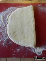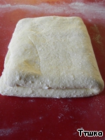 Конечно без отсебятины не обошлось. да, меня испугало,что нету сахара, поэтому я сыпанула 2 ст.ложки, + 1/2 ч.л. соды. Масло у меня столько слава богу не было, положила кусок в 170г. Как говорилось в рецепте, раскатала тесто, затем его сложила (не в три слоя как написано, а просто в столько, сколько складывалось). И так 4 раза. Последний раз раскатала где-то толщиной 3-4мм, вырезала прямоугольники, положила шоколадку и завернула как на картинке.