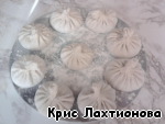 Очень хорошо защипить края в "хвостик", так, чтоб не осталось никаких дырочек, иначе весь драгоценный сок останется в кастрюльке с водой.