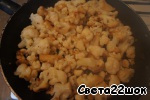 Промыть цветную капусту, разобрать ее на соцветия. Затем обжарить на небольшом количестве масла. Капусту я не варю!