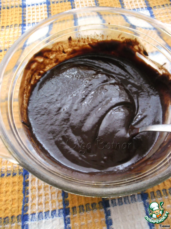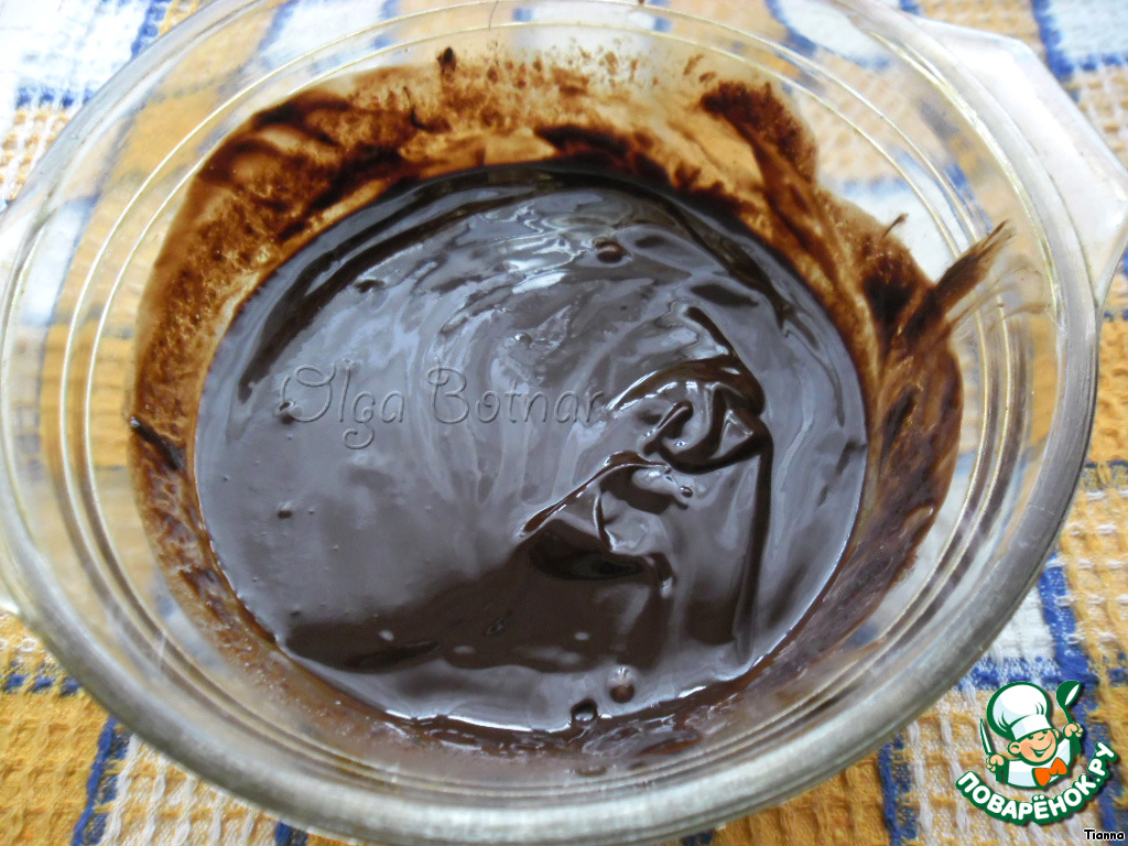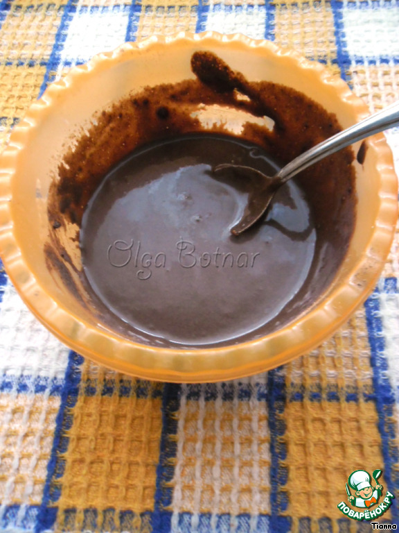 Приготовим глазурь. Для этого нужно смешать какао с сахарной пудрой и влить подогретые сливки. Перемешать, и глазурь готова.