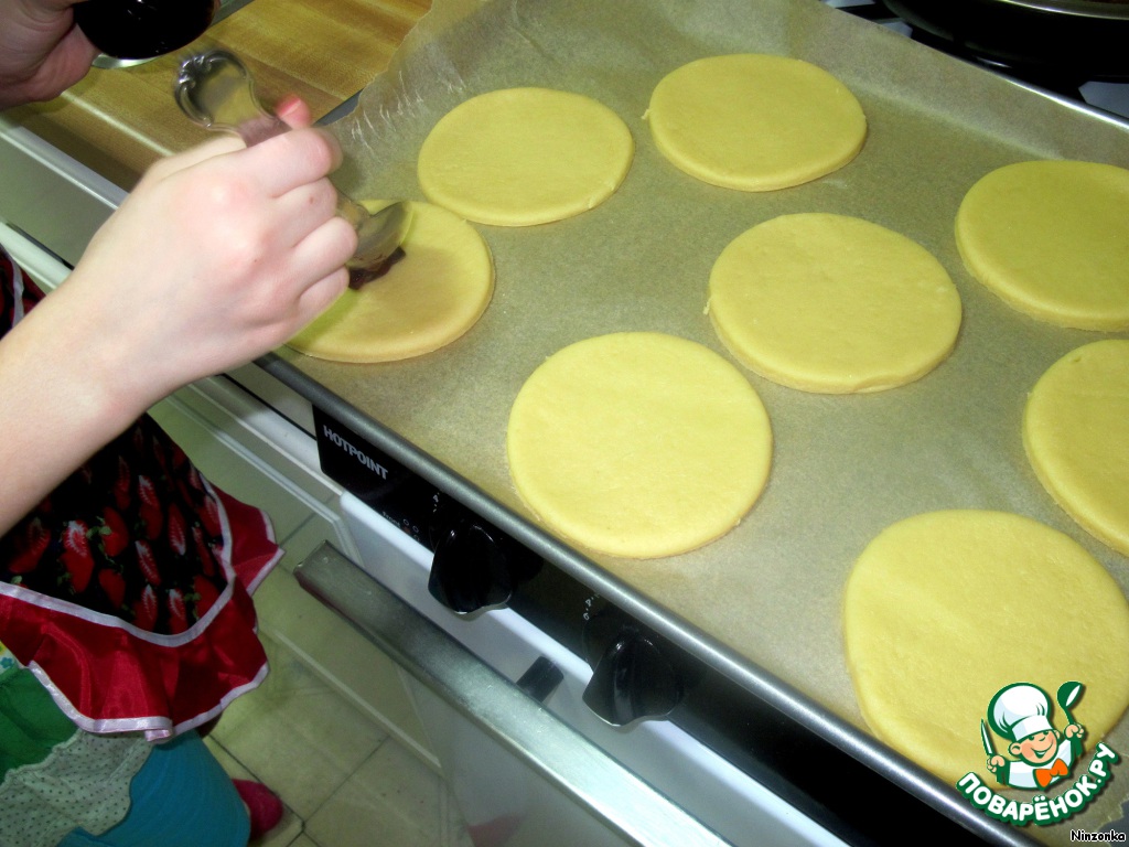 С помощью круглой формы или стакана вырезаем круги.