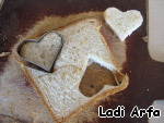Пока "цветочки" жарились, из ломтика хлеба вырезал 4 сердечка.