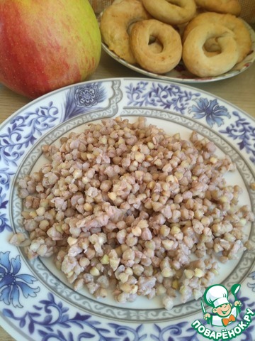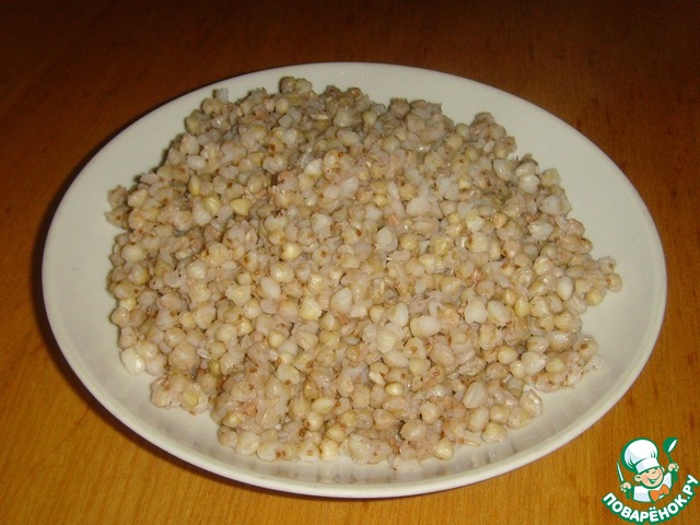 Продукты:1 стакан ( наша cup) гречки, 1 яйцо, слегка взбитое, 1 стакан кипящей воды, 1 чайная ложка соли.