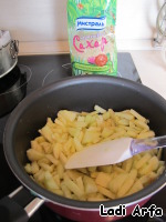 Растопив 20 г сливочного масла, потушили до мягкости яблоки, добавив 2 ложки сахара.