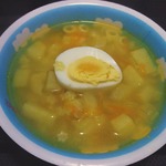В самом конце добавить взбитое яйцо при непрерывном помешивании.