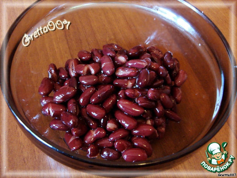 Фасоль можно взять консервированную, а можно сварить её самим. Во втором случае потребуется её предварительно замочить. Варят фасоль долго, до мягкости, чтобы зерна можно было легко раздавить.