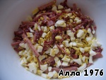 Яйца нарезать кубиками или соломкой (по Вашему желанию).