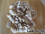 Свежие шампиньоны обтереть, нарезать пластиками.