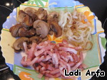 Начинку чередовала - лук с грибами и грудинку с луком.