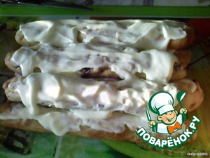 Обильно смазать кремом, чтобы затекло между трубочек.