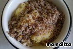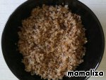 Луковицу мелко нарезать, слегка поджарить, смешать с готовой гречкой и натертым картофелем.