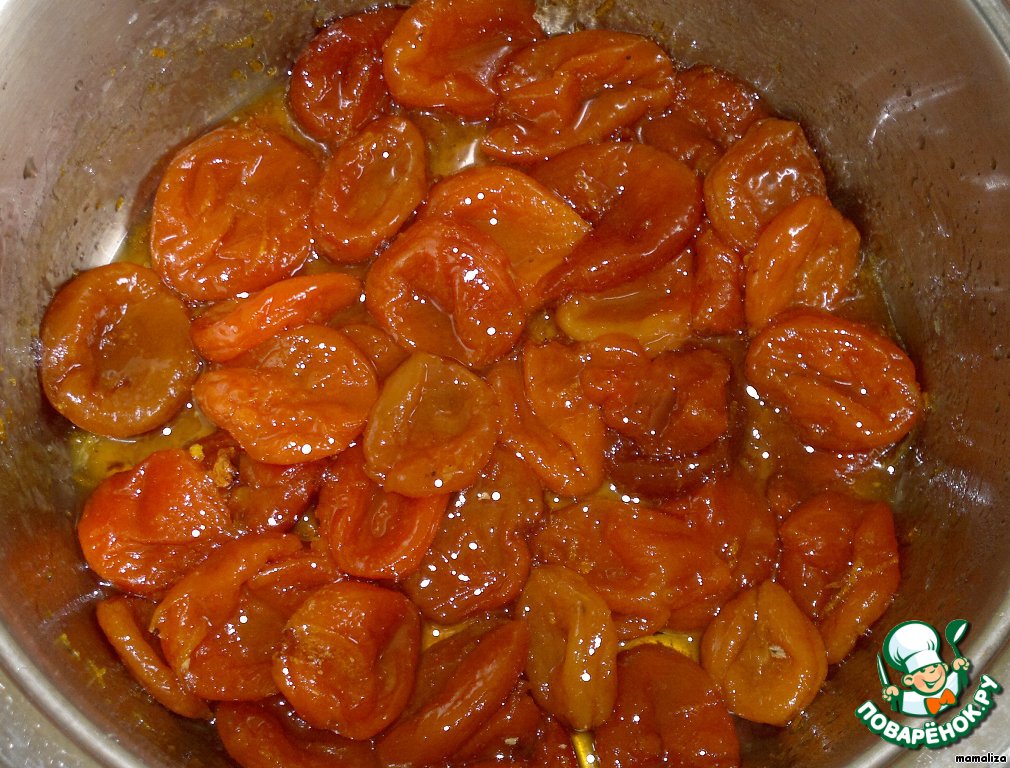 Курагу тщательно промыть, поварить на медленном огне с добавление сока 1-го апельсина, апельсиновой цедры и светлого сиропа или меда.