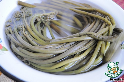 А сухой папоротник предварительно на ночь замачивают, потом также варят, потом тушат и т.д.