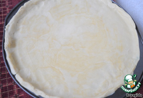 На ночь поставила хрущевское тесто http://www.povarenok .ru/recipes/show/469 84/, по рецепту Lolo1313, пеку из него давно, и для пиццы оно подходит идеально, пицца получается тоненькая, я не очень люблю много теста в пицце. Утром вынула его из холодильника и дала ему немного подойти.