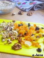 В даном случае я использовала курагу, чернослив, изюм и ананасовые цукаты, эти и другие разнообразные добавки можно добавлять на свой вкус.
