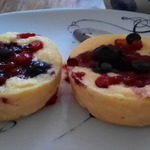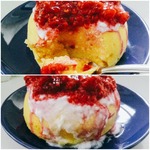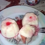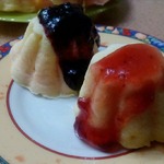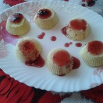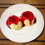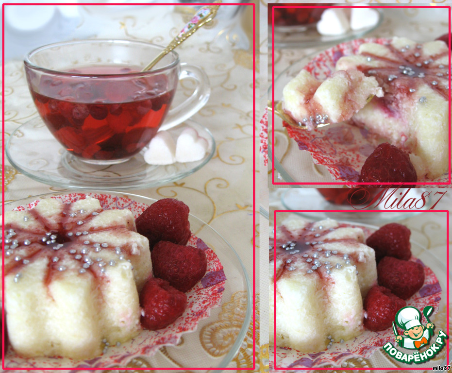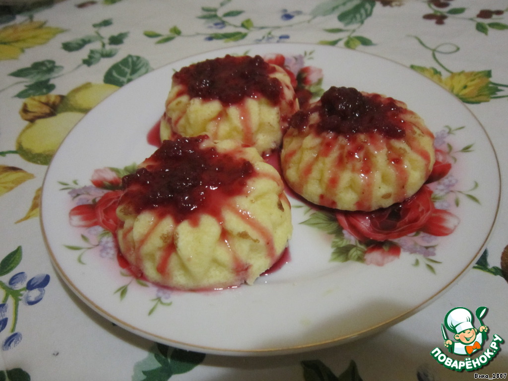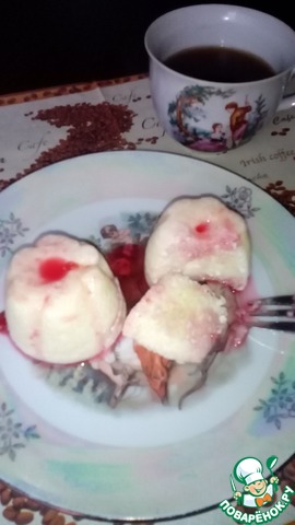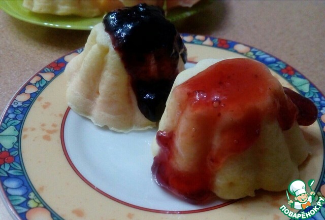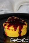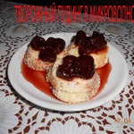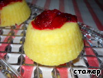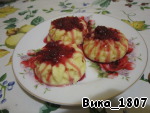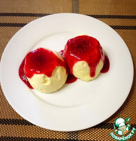 Подаем в теплом или холодном виде, полив ягодным сиропом или соусом. Я приготовила экспресс-соус из малины (сахарный сироп и замороженную малину взбила в измельчителе), более подробно здесь - http://www.povarenok .ru/recipes/show/646 85/.