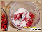 Для соуса следует взбить малину с сахаром в блендере и протереть через сито.