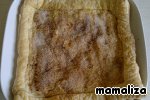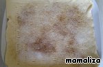 Затем посыпать сахаром и корицей, поставить в разогретую до 200 градусов духовку, сразу же снизив температуру до 170 градусов. Выпекать 15 минут. Центр прижать лопаткой и печь еще 10-15 минут.