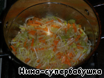 Добавить мясо и готовить, помешивая, еще 2-3 минуты.