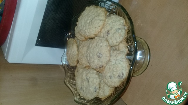 Очень вкусное, рассыпчатое, ароматное овсяное печенье. В нeм большое количество овсянки, изюма, остановиться невозможно. Мои карапузы, и я вместе с ними, наелись от души. Это печенье теперь одно из наших любимых. Надеюсь, и вам понравится!!!