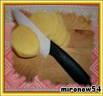 Картофель сначала режем на тонкие пластины 3-5 мм толщиной