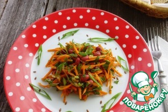 Очень вкусный салат из простых продуктов! Можно использовать также в качестве гарнира. Фасоль богата белками, поэтому в постные дни данное блюдо будет прекрасным угощением :-)