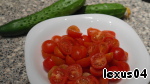 3. Помидорки черри размером с фалангу большого пальца рубим на двое.