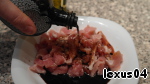 9. Мясо (250 гр) нарезаем - любое сырокопченое, что любо: кура, коровка, свинка, бебешку можно.